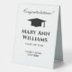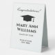 Elegant table top sign for graduation party. Personalise with custom name and class year. Academic tassel cap logo with classy typography. Great for signing guest books, leaving gifts, notes etc. Double sided print.