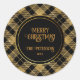 Elegant Tartan Black Gold Glitter Classic Round Sticker