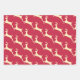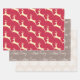 Three elegant, festive Christmas wrapping paper sheets with Gold reindeer, Snowflakes and Merry Christmas silver script. Cream, red and taupe background colours give a classy, understated finish to your gifts.