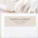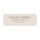 This return address label features a minimalist design with a clean, modern aesthetic. The layout is simple and balanced, showcasing centered text on a soft beige background with a muted taupe gray color palette. The typography uses elegant serif fonts in varying sizes to create a clear hierarchy, emphasizing readability and sophistication. Perfect for those who appreciate understated elegance, this label combines functionality with a professional touch, ideal for personal correspondence or special occasions.