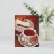 This elegant postcard captures a cozy tea moment with a delicate slice of strawberry cake and a warm cup of tea served on vintage-style china. The rich colors and classic composition create a refined, timeless atmosphere, perfect for those who appreciate simple pleasures and beautiful details.