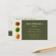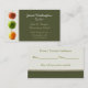This unique teacher's business card is done in a khaki green and tan colours, with photography of three colourful apples on the left side of the card. The backside is done like an appointment card for parent teacher conferences. All text is ready to personalise with your information. Great business card for any teacher.