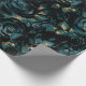 Elegant Teal and Gold Rose Floral Pattern Wrapping Paper