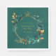 Elegant Teal and Gold Watercolor Floral Wedding Napkin