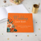 This is an elegant floral wedding Guest Book with teal blue and burnt orange watercolor flowers on a orange background design. It is perfect for a romantic fall garden wedding celebration.