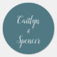 These elegant teal and white wedding envelope seals are perfect for a modern wedding. Personalise the label with the names of the bride and groom.
