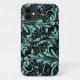 Elegant teal blue and black damask floral pattern Case-Mate iPhone case