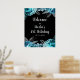 Elegant Teal Blue and Silver Flower Birthday Party Poster