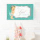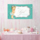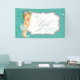Teal blue baby shower banner with adorable baby girl wearing ruffle pants and crown on a beautiful teal blue and silver background. This elegant teal blue and silver baby shower banner works well for a Tiffany theme baby shower. You can add the text of your choice.