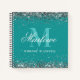 Elegant Teal Blue Green Monogram Silver Glitter Notebook