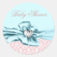 Elegant pink and teal blue baby shower stickers. These pretty pink and teal blue baby shower stickers are easily customised for your event by simply choosing the "Customise it!" button to begin adding your event details, font style, font size & colour, and wording. Please note - all of the stickers, cards and invitation designs you will find on Zazzle are printed graphics with no actual jewels, bows, raised, embossed, or added parts or pieces.