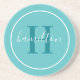 Elegant Teal Blue Round Monogram Script Coaster