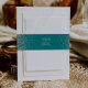 The left and right edges of this elegant modern wedding invitation belly band feature a silver faux glitter border on a teal blue background. Personalise it with the names of the bride and groom in silver grey handwriting script over a large ampersand.