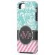 Elegant Teal Blue & white floral damask & stripes Case-Mate iPhone Case