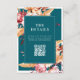 Modern fall wedding enclosure cards with elegant boho fall floral accents of dahlia flowers and autumn botanical leaves, minimalist typography design on teal background. Add your own personalised QR code with custom wedding website url.