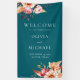 Elegant Teal Boho Chic Floral Wedding Welcome Banner