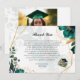 This is a stylish graduation thank-you card featuring an elegant floral design with teal and gold accents. The card includes a heartfelt message of gratitude, set against a soft, botanical background. Perfect for expressing appreciation to friends and family after a graduation celebration. Customise for a personal touch including the photo on the back!