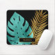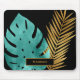 Elegant Teal Gold Tropical Leaves Black Monogram Mouse Mat