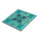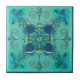 An artistic tile for bathroom or kitchen featuring a fantasy geometric design in teal and mint green colours.