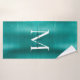 Elegant Teal Green Brushed Metal Monogram Script Bath Towel Set