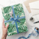 This elegant botanical wrapping paper features a teal green monstera leaves pattern.