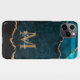 Elegant Teal Marble Agate Geode Gold Monogram iPhone Case