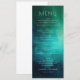 This elegant wedding menu features a deep teal background with crisp white text, creating a sophisticated and inviting atmosphere. The layout is clean and structured, with distinct sections for Starters, Salad, Main Course, and Dessert, each highlighted by bold serif typography that adds a touch of formality. Ample white space enhances readability, while the minimalist design focuses on the curated dining experience. Perfect for special events, this template offers customizable placeholders for names and dates, ensuring it can be tailored to any celebration.