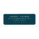 This elegant label features a clean, minimalist layout with centered text on a deep teal background. The design utilizes classic serif fonts for a sophisticated and formal look, perfect for weddings or significant announcements. Customizable placeholders allow for personalization of names, addresses, and locations, making it versatile for various events. The high contrast between the white text and dark background ensures readability while conveying a refined mood. Ideal for those seeking a timeless and polished aesthetic in their stationery.