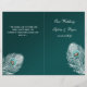 Elegant white and teal peacock Wedding program, you will have to manually fold these programs. click "clear" on you right if you want to remove folding lines on front and back these folding lines are given to guide you that none of your text runs into other side. Matching products also available.