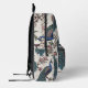 This Elegant Teal Peacocks and Magnolia Flowers Floral Printed Backpack drawn in Chinoiserie style pattern features hand-drawn blue and teal peacocks perched on Magnolia tree branches in bloom on an elegant ivory background with magnolia bloom silhouettes.