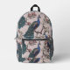 Elegant Teal Peacocks & Magnolia Flowers Pink Printed Backpack
