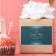Make a lasting impression with this elegant and modern product label design featuring pretty gold soft glitters on a teal background with a shimmery frame.
