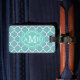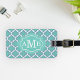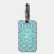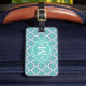Elegant Teal Quatrefoil Pattern Custom Monogram Luggage Tag