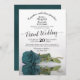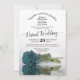 This beautiful invitation is designed for couples who have decided to take their weddings online due to the ongoing pandemic. It features a gorgeous design with lacy script calligraphy a single long-stemmed teal or turquoise coloured rose reflecting in a pool of water. Wonderful way to invite your friends and family to share in your special day, even if circumstances prevent a physical gathering.