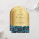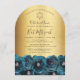 This elegant watercolor floral arch shaped Bat Mitzvah invitation features a border of teal roses with a gold Star of David on a faux gold shiny background. Personalise all of your celebration details in modern script calligraphy. Designed by Susan Coffey.