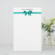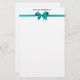 Elegant Teal Satin Bow on White Stationery