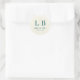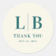 This elegant wedding sticker features a minimalist design with a clean, modern layout. The deep teal letters "L" and "B," separated by a vertical line, are set against a soft cream background, creating a sophisticated contrast. Below the initials, the phrase "THANK YOU" is printed in a smaller serif font, enhancing the formal tone. The overall style is understated yet refined, perfect for expressing gratitude at your special event.