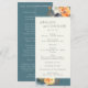 Elements: bold florals on a teal background. Your names and details are framed in a classic cream tone. Colours: teal, green, navy, cream, terracotta, orange, gold, dusty blue. Themes: cool neutrals, classic, contemporary, boho, bohemian, botanical, garden. Collection: Elegant Teal Terracotta Navy Boho Floral Wedding Collection. Product Type: Program