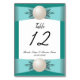 Elegant Teal & Turquoise Pearl Ribbon Wedding Table Number