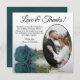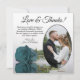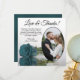 These beautiful wedding thank you cards are a wonderful way to show your appreciation to your friends and family for celebrating with you on your special day. They feature your wedding photo in an oval shaped frame with a single long stemmed teal or turquoise coloured rose lying on its side reflecting in water. The title reads "Love & Thanks" with room for a custom note and signature. Classy, romantic, and sophisticated, these cards are the perfect way to conclude your wedding celebration.
