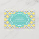 Elegant Teal Yellow Quatrefoil Party Planner Business Card
