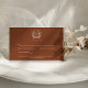 This is an elegant, formal, and classic botanical crest and monogram wedding rsvp response card in terra cotta.