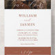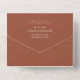 An Elegant Modern Rustic Terracotta Wedding All in one invitation with a QR code for rsvp options for guests featuring a stylish thin calligraphy script font and simple typography. This invitation has a perfect clean text alignment which gives a classy and minimalist look, perfect for your special day.