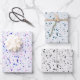 Elegant terrazzo purple white teal black design craft decoupage wrapping paper sheets set of three different patterns. Cool, chic, trendy, modern. Image copyright Marg Seregelyi Photography.