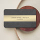 Elegant customisable business card template with texture black background and faux metal stripe.