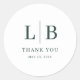 This is a minimalist style image featuring an elegant thank you card with the initials "L | B" prominently displayed in a sophisticated serif font. The design uses a soft, muted green colour against a clean white background, creating a timeless and refined look. It exudes gratitude and appreciation, making it perfect for expressing thanks on special occasions or as a heartfelt gesture after events like weddings or gatherings.