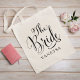 Make the bride feel celebrated with this stunning tote featuring "The Bride" in bold flowing calligraphy script and a personalized name in sophisticated block lettering. A perfect accessory for the bachelorette weekend, bridal shower, or wedding day getting ready. Name is fully customizable.