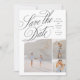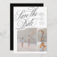 This elegant three-photo wedding save the date features a beautiful "save the date" script type treatment, simple custom text and a collage of one large and two smaller photos. This beautiful save the date design is a great way to share engagement photos and tell family and friends wedding details. The back features an elegant matching black with soft dots along iwth a customizable message and a qr code for your wedding website. This original card by Lea Delaveris Design is available in more styles and colors in the collection and also as a digital save the date download.
