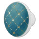Elegant Tile Teal Blue & Gold Squares Ceramic Knob