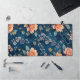 This desk mat showcases an elegant, timeless floral pattern with peach and ivory blossoms intertwined with delicate leaves and vines on a deep blue background. Blending vintage charm with modern sophistication, it adds a stylish touch to your workspace, making it perfect for everyday use or special occasions. The design evokes the serene and graceful spirit of spring, offering a calming yet elegant aesthetic to enhance your desk environment.